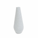 This beautiful ceramic vase makes an excellent addition to any home interior. Unique vase is handmade of a ceramic with rope textured outer finish. Where the dynamic design defines the look of this vase, its tapered small bottom indented impressions. A white finish anoints the piece, tall body with small open mouth playing delightfully with the complete structure. Fill this small-sized vase with fresh flower or artificial for a lovely accent.