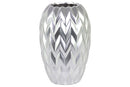 Round Ceramic Vase With Embossed Wave Design, Large, Matte Silver