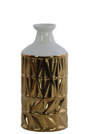 Round Ceramic Vase With White Banded Rimmed Top, Small, Chrome Gold