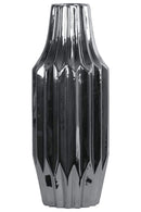 Round Ribbed Patterned Vase With Broad Mouth In Ceramic , Large, Silver