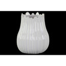 Featuring a glossy white finish, irregular shape and wave design on body this Bellied Round Vase is made using the best quality ceramic. The vase adds to the landscape of your home with its exquisiteness and is a right choice for gifting to your loved ones. The vase is customized for modern design scheme and can uplift the decor of your bedroom/Living room/hall. The design of this vase is one-of-a-kind and is a perfect piece of modern art. Dimensions: 6.25in x 6.25in x 7.50in