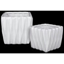 This set of 2 ceramic square pattern vases is made for your lovely interiors. You can arrange florals, perch them on a table top or use as a centerpieces. If that wasn't lovely enough already, these wondrous ceramic vases bear triangle designed lips and a gloss finish white color that accentuates its beautiful construction.