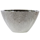 Make a unique addition to your interiors with this elliptical shape vase, designed in beaded pattern and features tapered bottom. Crafted from stoneware, the chrome finish in silver color of this vase exhibits a royal touch. This stoneware vase is sure to make a statement of its own in your living space.