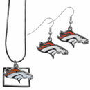 Get in on the trend! State themes are a trend that just keeps getting more popular and this jewelry set takes the state style and give it a sporty twist with aÊDenver Broncos necklace that features an Arizona state outline charm paired with a beautiful team charm and matching team charm dangle earrings. The earrings feature hypoallergenic fishhook posts that are nickel free.Officially licensed NFL product Licensee: Siskiyou Buckle. The team charms are fully cast metal with enameled details. The earrings feature hypoallergenic, nickel free fishhook posts. The necklace is an 18 inch snake chain with 2 inch extender. A trendy jewelry set that would make any Denver Broncos fan happy to own