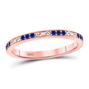 Description 10kt Rose Gold Womens Round Blue Sapphire Flourished Stackable Band Ring 1/6 Cttw Gemstone Details 1/6 Carats total weight Specifications 10kt Rose Gold Combined gemstone weight of 1/6 carats total weight represents a range of 0.15 - 0.17 cts. t.w.
