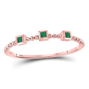 10kt Rose Gold Women's Princess Emerald Beaded 3-stone Stackable Band Ring .03 Cttw