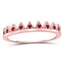 Description 10kt Rose Gold Womens Round Ruby Beaded Chevron Stackable Band Ring 1/10 Cttw Gemstone Details 1/10 Carats total weight Specifications 10kt Rose Gold Combined gemstone weight of 1/10 carats total weight represents a range of 0.09 - 0.11 cts. t.w.