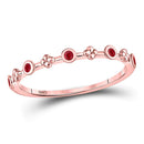 Description 10kt Rose Gold Womens Round Ruby Dot Flower Stackable Band Ring 1/12 Cttw Gemstone Details 1/12 Carats total weight Specifications 10kt Rose Gold Combined gemstone weight of 1/12 carats total weight represents a range of 0.07 - 0.08 cts. t.w.