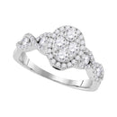 10kt White Gold Women's Diamond Oval Cluster Twist Ring 1.00 Cttw