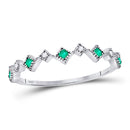 10kt White Gold Women's Emerald Diamond Stackable Band Ring 1/5 Cttw