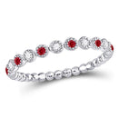 10kt White Gold Women's Ruby Diamond Beaded Dot Stackable Band Ring 1/6 Cttw