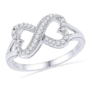 Description 10kt White Gold Women's Round Diamond Infinity Heart Ring 1/6 Cttw Gemstone Details 1/6 Carats total weight Specifications 10kt White Gold _Combined diamond weight of 1/6 carats total weight represents a range of 0.15 - 0.17 cts. t.w.