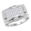 Description 14kt White Gold Men's Princess Diamond Wide Arched Cluster Ring 2.00 Cttw Gemstone Details 2.00 Carats total weight Specifications 14kt White Gold Combined diamond weight of 2.00 carats total weight represents a range of 1.95 - 2.05 cts. t.w.