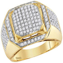 Description 10kt Yellow Gold Men's Round Diamond Square Elevated Cluster Ring 1-1/2 Cttw Gemstone Details 1 & 1/2 Carats total weight Specifications 10kt Yellow Gold Combined diamond weight of 1 & 1/2 carats total weight represents a range of 1.46 - 1.58 cts. t.w.