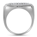 Description 10kt White Gold Men's Round Pave-set Diamond Rectangle Cluster Ring 2-3/4 Cttw Gemstone Details 2 & 3/4 Carats total weight Specifications 10kt White Gold _Combined diamond weight of 2 & 3/4 carats total weight represents a range of 2.71 - 2.82 cts. t.w.