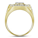 Description 10kt Yellow Gold Men's Round Diamond Square Frame Cluster Ring 2-1/2 Cttw Gemstone Details 2 & 1/2 Carats total weight Specifications 10kt Yellow Gold _Combined diamond weight of 2 & 1/2 carats total weight represents a range of 2.46 - 2.58 cts. t.w.