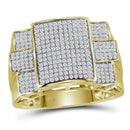 Description 10kt Yellow Gold Women's Round Diamond Symmetrical Square Cluster Ring 3/4 Cttw Gemstone Details 3/4 Carats total weight Specifications 10kt Yellow Gold Combined diamond weight of 3/4 carats total weight represents a range of 0.71 - 0.82 cts. t.w.