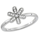 Description 14kt White Gold Women's Round Diamond Flower Floral Stackable Band Ring 1/10 Cttw Gemstone Details 1/10 Carats total weight Specifications 14kt White Gold _Combined diamond weight of 1/10 carats total weight represents a range of 0.09 - 0.11 cts. t.w.