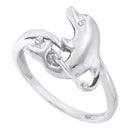 Description 10kt White Gold Women's Round Diamond Dolphin Animal Ring .03 Cttw Gemstone Details .03 Carats total weight Specifications 10kt White Gold