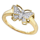 10kt Yellow Gold Women's Round Diamond Butterfly Bug Cluster Ring 1/12 Cttw - FREE Shipping (US/CAN)