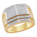 Description 10kt Yellow Gold Men's Round Diamond Symmetrical Arched Cluster Ring 3/8 Cttw Gemstone Details 3/8 Carats total weight Specifications 10kt Yellow Gold Combined diamond weight of 3/8 carats total weight represents a range of 0.37 - 0.45 cts. t.w.