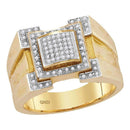 Description 10kt Yellow Gold Men's Round Diamond Square Frame Cluster Ring 1/4 Cttw Gemstone Details 1/4 Carats total weight Specifications 10kt Yellow Gold Combined diamond weight of 1/4 carats total weight represents a range of 0.23 - 0.29 cts. t.w.