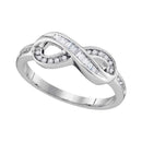 Description 10kt White Gold Women's Round Baguette Diamond Infinity Ring 1/5 Cttw Gemstone Details 1/5 Carats total weight Specifications 10kt White Gold Combined diamond weight of 1/5 carats total weight represents a range of 0.18 - 0.22 cts. t.w.