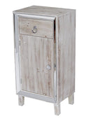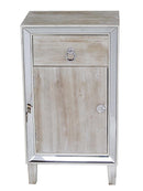 Dresser with Mirror - 23" X 20'.5" X 41'.5" White Washed MDF, Wood, Mirrored Glass Accent Cabinet with a Drawer and a Mirrored Door