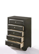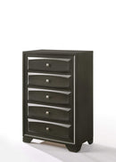 This versatile chest will make an ideal addition to any bedroom for proper organization and arrangement. The transitional chest features antique gray finish and clean lines that create a unique appearance in the room setting. It has five large storage drawers to allow maximum storage space for all your bedroom items. We back our chest to add a modern elegance and style to your bedroom with its unique construction. Definitely this will bring an end to all your bedroom storage problems.