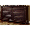 This capacious dresser is a bold choice for a posh lifestyle. The drawers are burly with ample storage space to accommodate all of your make up essentials. This dresser have a bold design which features antique gold hardware, finished in deep brown cherry. It does not include any featured product other than dresser. Dresser Dimensions: 18" x 69" x 42".