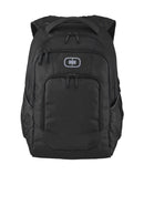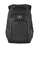 This pack makes a bold statement while protecting all your techie toys. 600D poly dobby/600D poly Spacious main compartment Large secondary compartment Interior padded laptop compartment Interior padded tablet sleeve Front compartment with deluxe organization panel, zippered pocket and key fob Ergonomic padded shoulder straps Padded back panel with moisture-wicking air mesh Dual side mesh water bottle/accessory holders OGIO embroidered zipper pulls Laptop sleeve: 15'h x 12'w x 1.5'd; fits most 15' laptops Dimensions: 19'h x 12'w x 6'd Capacity: 1,700 cu.in./27.9 L Weight: 1.3 lbs./0.59 kg Bags not intended for use by children 12 and under.