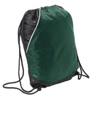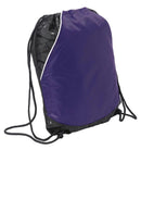 Sport-Tek Rival Cinch Pack. BST600 A tonal graphic print gives this cinch pack distinctive character, while front and interior Pocket help keep small items organized. _ 100% polyester _ Exterior full-size pouch Pocket _ Interior Pocket with hook and loop closure _ Black drawcord closure allows this bag to double as a backpack _ Bottom grommets _ Dimensions: 17.5h x 13.75w