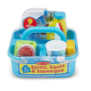 Part of playing house is keeping things sparkling clean! This pretend play cleaning set lets kids spray, squirt, squeegee, scour, and scrub using either real water or their imaginations. The spray bottle, scouring powder can, and soap bottle can be filled with water, making it perfect as a bath toy. The nine-piece set also includes supplies to keep things shining like a soft cloth, a scrub brush, a sponge, and a rubber-tipped squeegee! There's even a reusable checklist that helps kids learn what items work best to clean different household objects and areas. All of the supplies store neatly in the durable caddy with a built-in handle for easy toting. Promotes fine and gross motor skills and encourages imaginative play. Not for use with real cleaning materials.