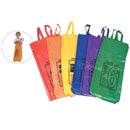 Children will love racing in these bright, roomy sacks. Each bag has a flat bottom, super-stitched seams and nylon short and long handles, with numbers printed on the bags in four languages. These bags are perfect for indoor and outdoor use, and are able to withstand rug wear. With the highest inflammability rating in the industry, these jumping bags meet all ASTM F963 safety standards. Machine washable. Measures 26" x 13" x 13". Includes 6 jumping bags in assorted colors.