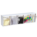 Tilt Bin horizontal interlocking storage system allows you to stack and connect to form a custom modular system. Transparent bins tilt out and stay open while in use. Can be wall mounted or used on countertop. Identification labels and mounting hardware included. Bins can be easily removed from locking mechanism for cleaning and refilling. Includes 5 bins. Each bin measures 4-1/4"W x 5-3/4"H x 3-3/4"D. Unit measures 23-5/8"W x 6-1/2"H x 5-1/4"D.