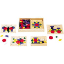 Keep children engaged for hours in rewarding play! Features 10 simply-designed, colorful patterns and over 100 pattern blocks in 6 different shapes and colors to replicate the pattern shown. Contents store neatly in durable wooden case.