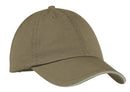 This budget-friendly cap has a self-fabric sweatband and a contrast sandwich bill. It's washed for a soft, lived-in look. Fabric: 100% washed cotton twill Structure: Unstructured Profile: Low Closure: Hook and loop