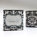 The bold pattern of the Love Bird Damask Stationery Collection features the well known damask style with perfect wedding details. The flowers twist into delicate little hearts that are interspersed flawlessly within the pattern. Additionally, amongst the flowers and foliage rest love birds, melding into the design with true artistry.Transform a simple box into your own unique style with a variety of color options to choose from. Easy to assemble, simply wrap it around a 5 cm x 5 cm/2"x2" White or Black Paper Box for a trendy and personalized favor box. paper weight - 70 lbs material - smooth text paper imperial - 2 x 8.5"H metric - 5 x 12.6cmH