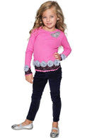 Long Sleeve Stretchable Raspberry Top with Black Lace and Grey Flowers