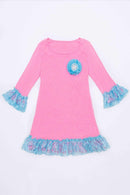 Three Quarter Sleeve Dress with Blue Lace Ruffles and Blue Flower