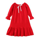 Cute Girls Cotton Solid Color Lace-up Round Neck Ruffle Design Dress