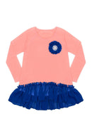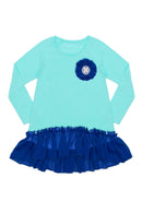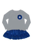 Long Sleeve Hi-Lo Top with Royal Blue Flower and Chiffon Royal Ruffle on the Bottom
