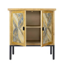 Furniture Sale - 31'.5" X 15" X 33'.8" Elm with Gray Iron, Wood, MDF 2-Drawer, 2-Door Parquet Sideboard