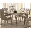The modern style dining table is what gives an iconic look to your dining hall as it becomes the center of attraction. Its beautiful to look at while the mirrored surface adds to its extraordinary appeal. The durable wooden construction in beige perfectly complements the whole look. Other featured items in image except table are sold separately.