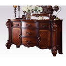 Add a majestic and traditional style to your home with this Dresser. The beautifully scrolled poster legs, molding trim, and decorative metal hardware of this dresser create a silhouette reminiscent of classical architecture while the wood grain details provide plenty of visual interest to enhance its elegant appearance. Five drawers and two side door cabinets let you store your clothes, bedsheets and linens neatly tucked away, while a spacious top provides a perfect platform for decors, photo frames, a vase of fresh flowers, or a stylish lamp. Crafted of durable wood and finished in cherry brown, the dresser will work in any dcor accommodating a wide array of design sensibilities. Note: Other featured items in image except this dresser are sold separately.