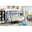Brighten up your kid's bedroom interior with this twin over full bunk bed. Made up of metal, this bunk bed is featuring a compact space saver design. Featuring a twin over full bed, this bunk bed is holding a complete blue finish. The top twin bed consists side rail support adding a graceful structure to its design and two attached ladders on sides giving an option for easy climbing. Consisting a transitional look, this space saver twin over full bunk bed is designed with precision so that it will blend easily with all styles of kid's bedroom. Mattress and pillows are not included.