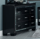 Frame of this 9 drawer wooden dresser accented with mirror and black finish which enhances the beauty of this dresser. It features nine spacious drawer with high polished crystal handle, providing a good space for your daily items and other knick knacks.