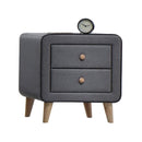 Transform your living space with the addition of this transitional style nightstand incorporating gray fabric upholstery. It features two drawers with ample storage space and wooden tapered legs that make it look elegant. Finished in a gray color, this nightstand is versatile and can be placed in any corner of your house. Other featured items in the image are sold separately.