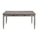 Experience the nuance of luxurious dining with this elegant gray dining table. Offering a contemporary touch to your living space, this wooden dining table bears a rectangular shaped table top. Equipped with four drawers for storage of cutlery, table mats, this dining table sports metal knobs on the drawers for a sturdy grip. Other featured items in image are sold separately.