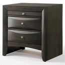 Add this beautiful contemporary Nightstand to your master bedroom for a sleek look that you will love. Crafted from engineered wood, the nightstand features beveled chamber drawer fronts and brushed chrome knobs that create a bold look to its gray finish. Its two spacious drawers provide you space to keep all of your bedside essentials close at hand, while one pull out tray provides the perfect spot to set your morning cup of coffee. Add this nightstand next to your bed to create a casual and functional bedroom where you can truly relax. Note: Other featured items in image except this Nightstand are sold separately.